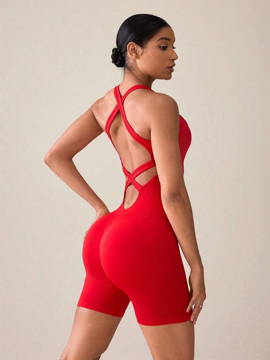 Slayoga Women'S Solid Color Backless Simple Sports Jumpsuit